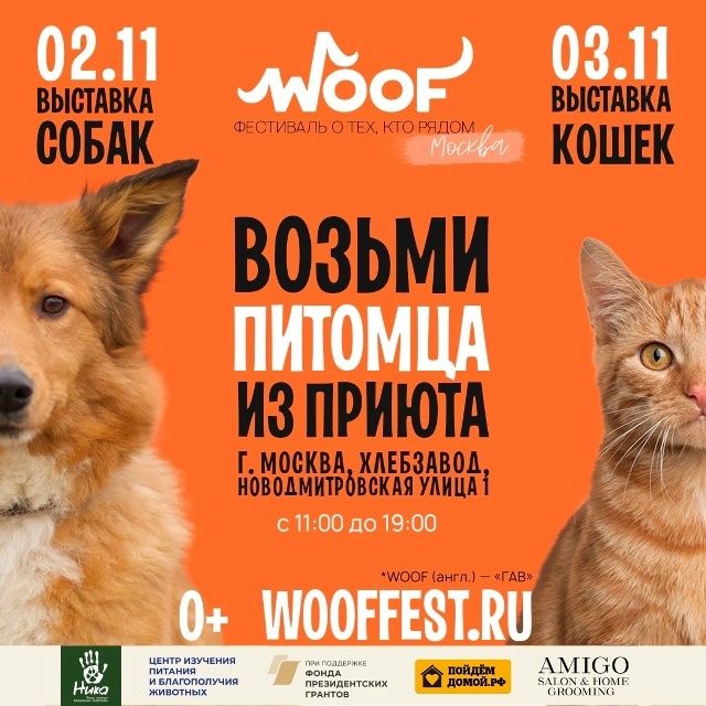 2 и 3 ноября мы будем вместе с фондом «Ника» и десятками других приютов на WOOF FEST — фестивале, который помогает сотням животных найти свои семьи.
